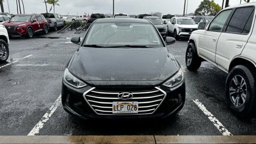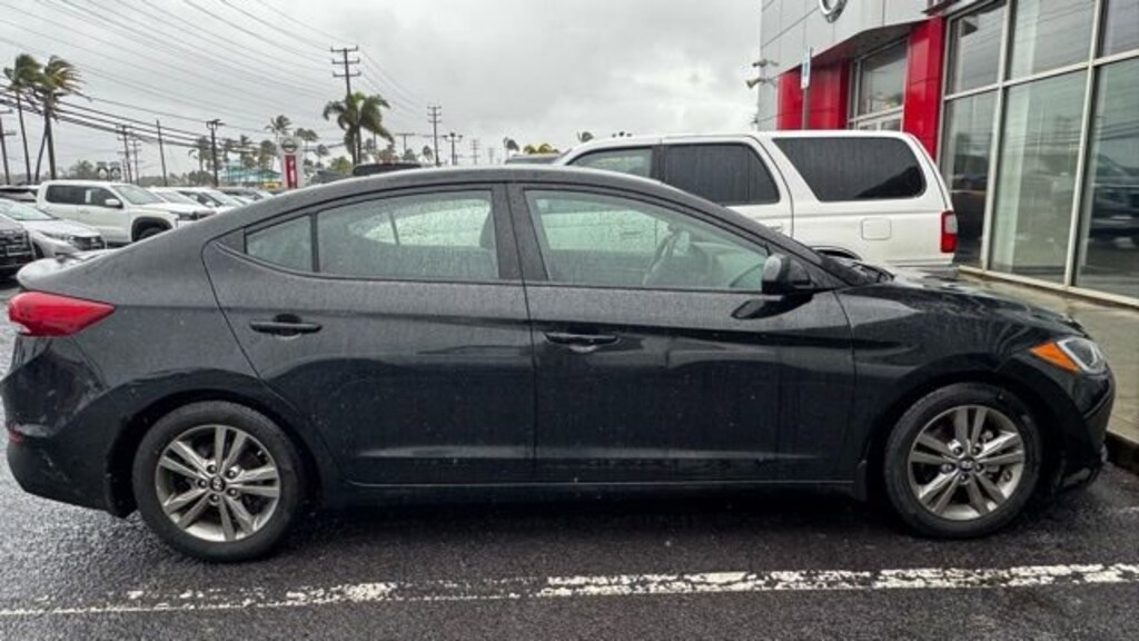 This Hyundai Elantra has many features and is well equipped including Option Group 01, 16 x 6.5 Alloy Wheels, 4-Wheel Disc Brakes, 6 Speakers, ABS brakes, Air Conditioning, Alloy wheels, AM/FM radio: SiriusXM, Apple CarPlay & Android Auto, Auto-dimming Rear-View mirror, Automatic temperature control, Brake assist, Bumpers: body-color, Carpeted Floor Mats, Cloth Seat Trim, Compass, Delay-off headlights, Driver door bin, Driver vanity mirror, Dual front impact airbags, Dual front side impact airbags, Electronic Stability Control, Exterior Parking Camera Rear, Front anti-roll bar, Front Bucket Seats, Front Center Armrest, Front dual zone A/C, Front reading lights, Front wheel independent suspension, Fully automatic headlights, Garage door transmitter: HomeLink, Heated door mirrors, Heated Front Bucket Seats, Heated front seats, Illuminated entry, Knee airbag, Low tire pressure warning, Mud Guards, Occupant sensing airbag, Outside temperature display, Overhead airbag, Overhead console, Panic alarm, Passenger door bin, Passenger vanity mirror, Power door mirrors, Power moonroof, Power steering, Power windows, Radio: AM/FM/HD/SiriusXM/MP3 Display Audio, Rear Bumper Applique, Rear window defroster, Remote keyless entry, Reversible Cargo Tray, Security system, Speed control, Speed-sensing steering, Split folding rear seat, Steering wheel mounted audio controls, Tachometer, Telescoping steering wheel, Tilt steering wheel, Traction control, Trip computer, and Variably intermittent wipers. Phantom Black 2018 Hyundai Elantra Value Edition FWD 6-Speed Automatic with Shiftronic 2.0L 4-Cylinder DOHC 16V